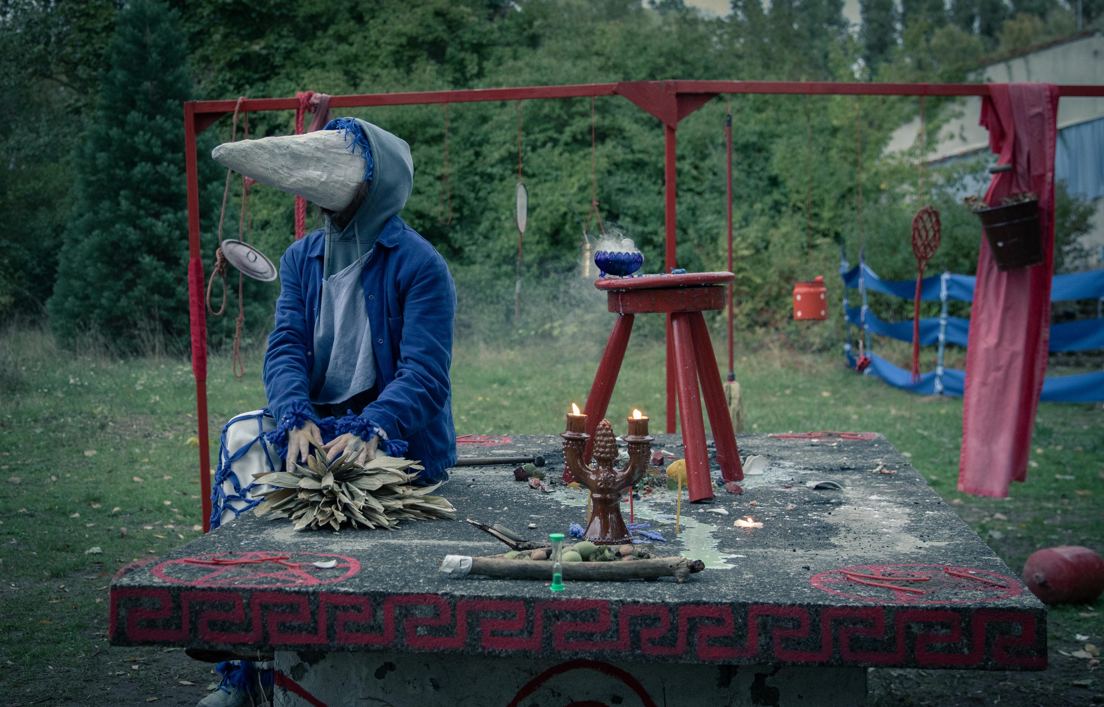 ... bietet ein fantasiereiches, 360-Grad immersives Setting, das konsensbasierte Mechaniken aus dem Bereich des Storytellings und des Rollenspiels (Larp) mit Elementen aus Theater, Performance und Mindfulness-Retreat verbindet, um Teilnehmenden und Performenden die Möglichkeit zu geben, unterschiedliche Narrative des Schmerzes und der Heilung spielerisch zu verhandeln.